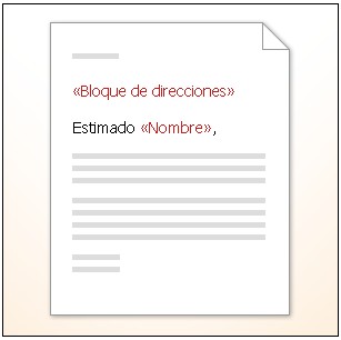 Cuando se inserta un campo de combinación de correspondencia en el documento principal, el nombre del campo siempre se indica entre comillas de combinación (« »). Estas comillas no aparecen en los documentos combinados. Simplemente ayudan a distinguir el texto normal de los campos en el documento principal.
